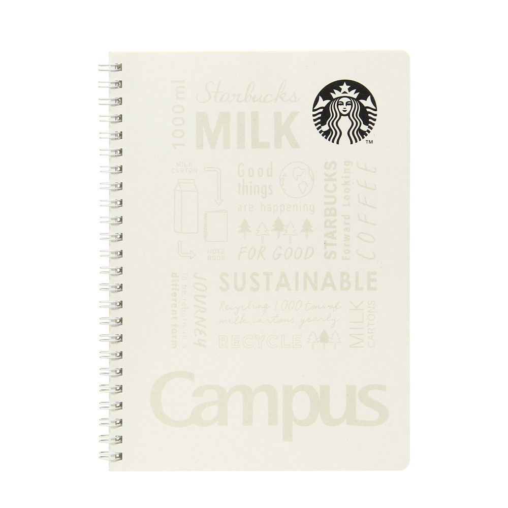 表紙にはSTARBACKSのロゴとともに、Campusのロゴも入っています。他にSUSTAINABLEやMILK、FOR GOODなど、このノートのコンセプトを表す言葉がデザインとして入っています。
